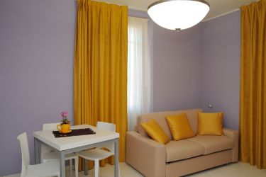 Caratterizzato dai toni delicati del lilla e del giallo, si compone di un salottino con divanoletto a due piazze e TV satellitare, di una moderna cucina attrezzata, di una camera matrimoniale con TV e di un bagno con doccia e asciugacapelli.