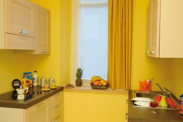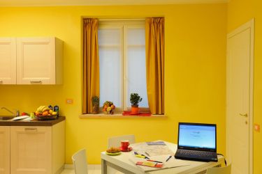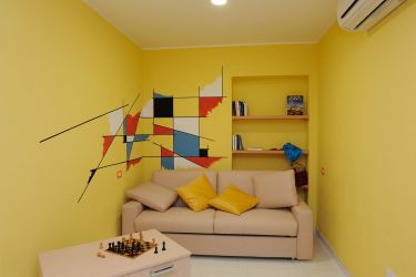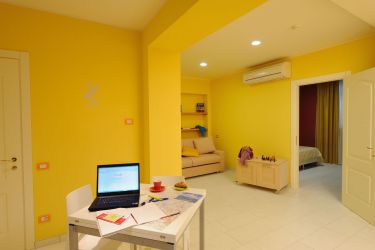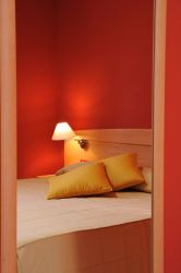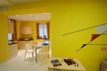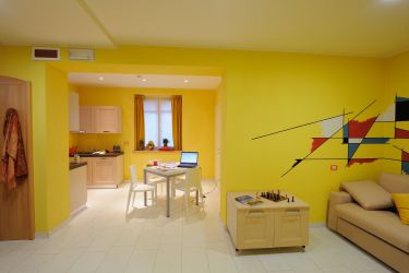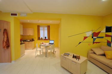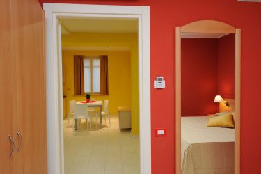 This one-bedroom flat, with red and yellow as the main colours of the walls and furniture, is made up of a large living room with a double sofa bed, satellite TV, a kitchen unit with the most modern appliances, a bathroom suitable for disabled users and a double bedroom.