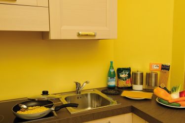 There is a large living room with a double sofa bed, a TV set and a modern, fully equipped kitchen unit. The double bedroom has a TV set and a bathroom with shower and hair dryer.